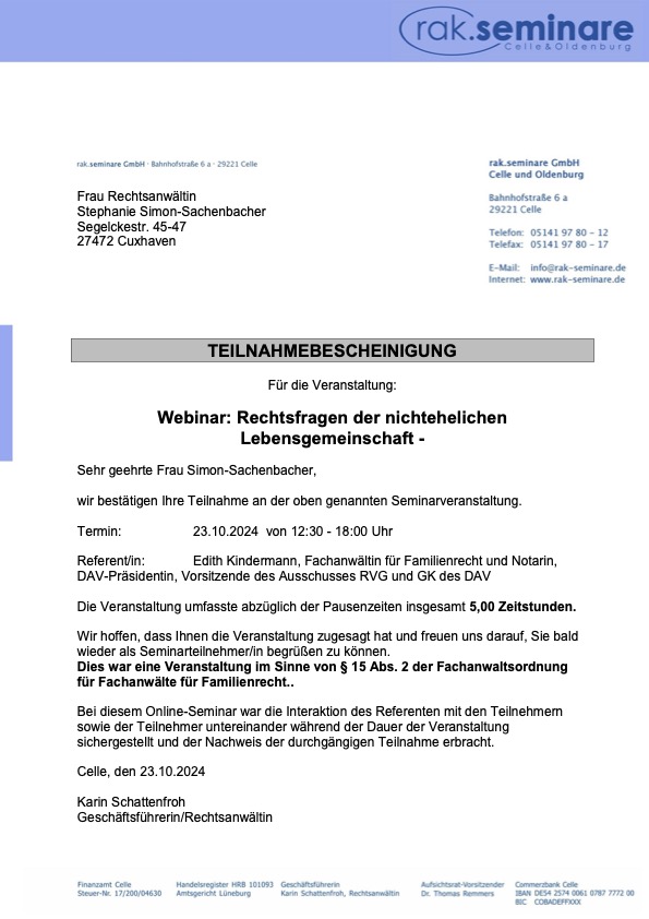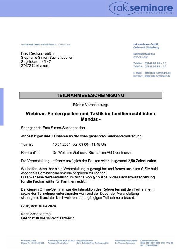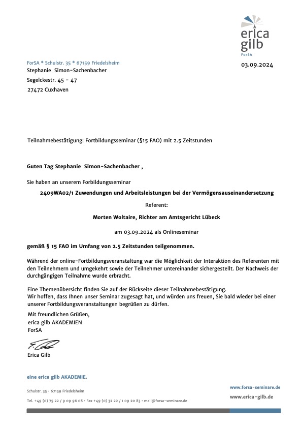 ich aufmerksam an entsprechenden Fortbildungen teil.